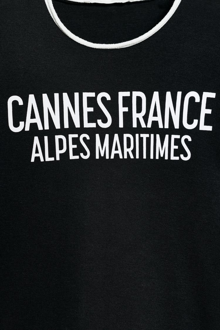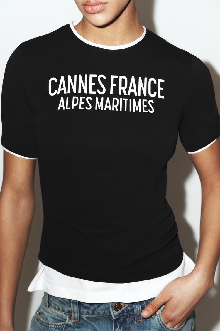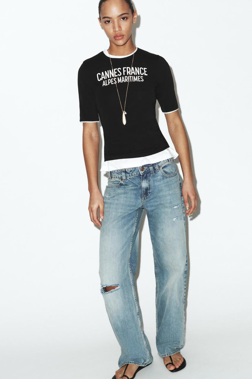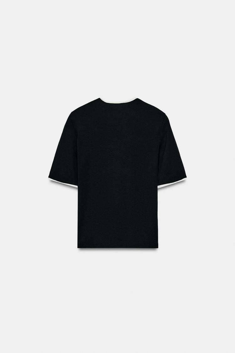 ZARA ФУТБОЛКА С НАДПИСЬЮ И КОНТРАСТНЫМИ ДЕТАЛЯМИ, ЧЕРНЫЙ