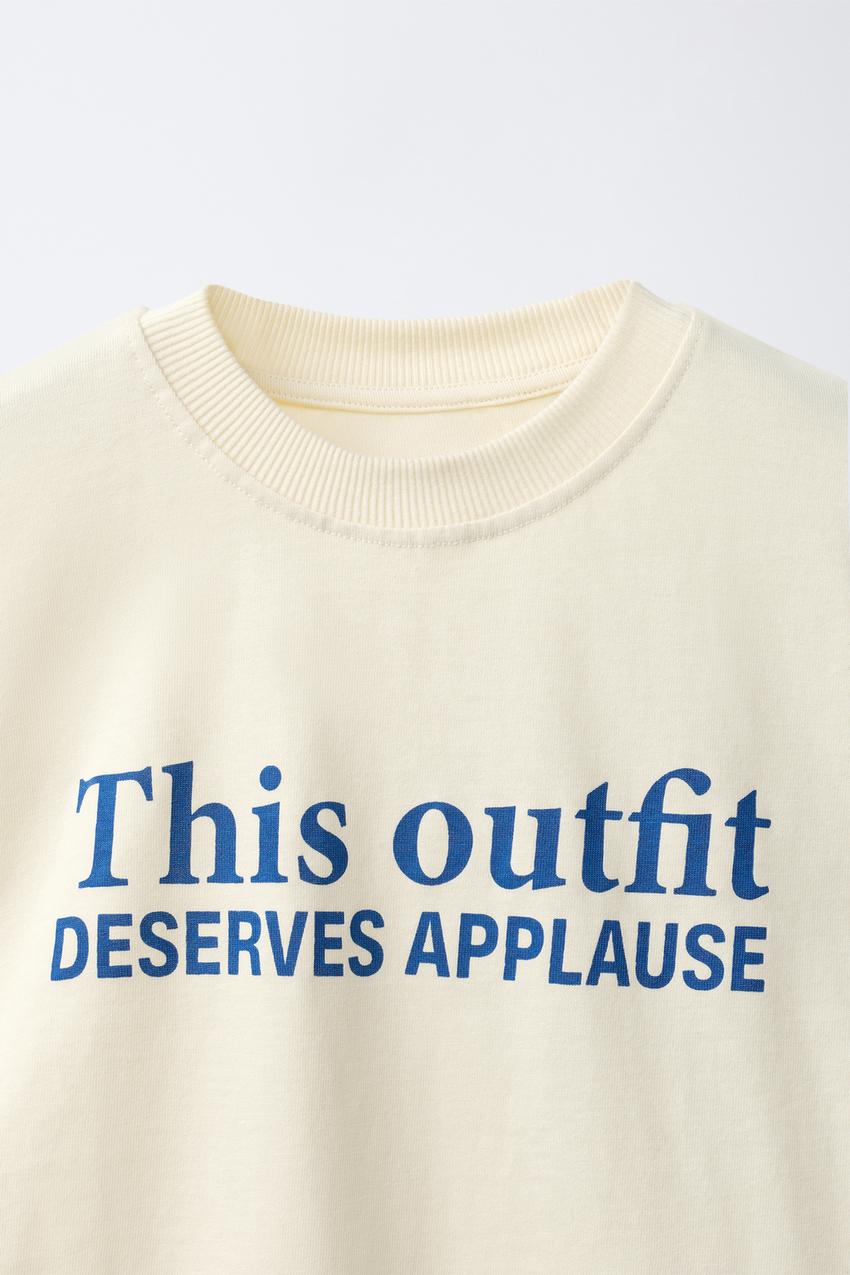 ZARA ФУТБОЛКА С НАДПИСЬЮ И РЮШАМИ, ВАНИЛЬНЫЙ