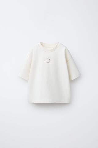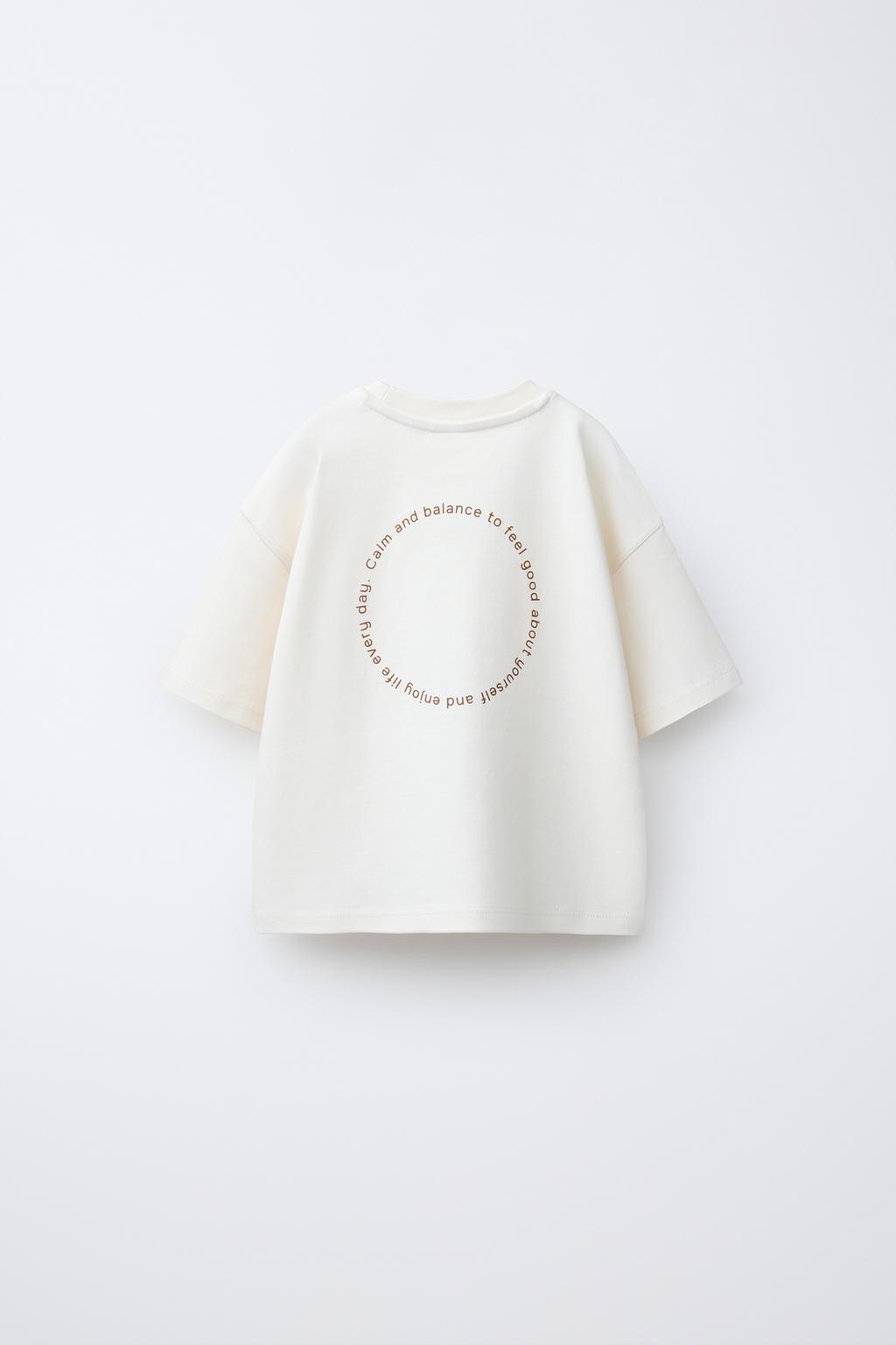 ZARA ФУТБОЛКА С НАДПИСЬЮ ИЗ ИНТЕРЛОКА, ЭКРЮ