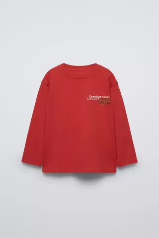 ZARA ФУТБОЛКА С НАДПИСЬЮ, КРАСНЫЙ