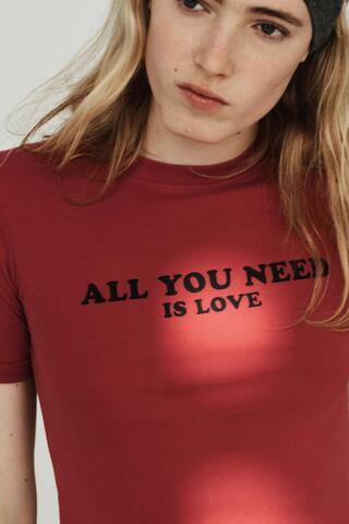 ZARA ФУТБОЛКА С НАДПИСЬЮ, КРАСНЫЙ