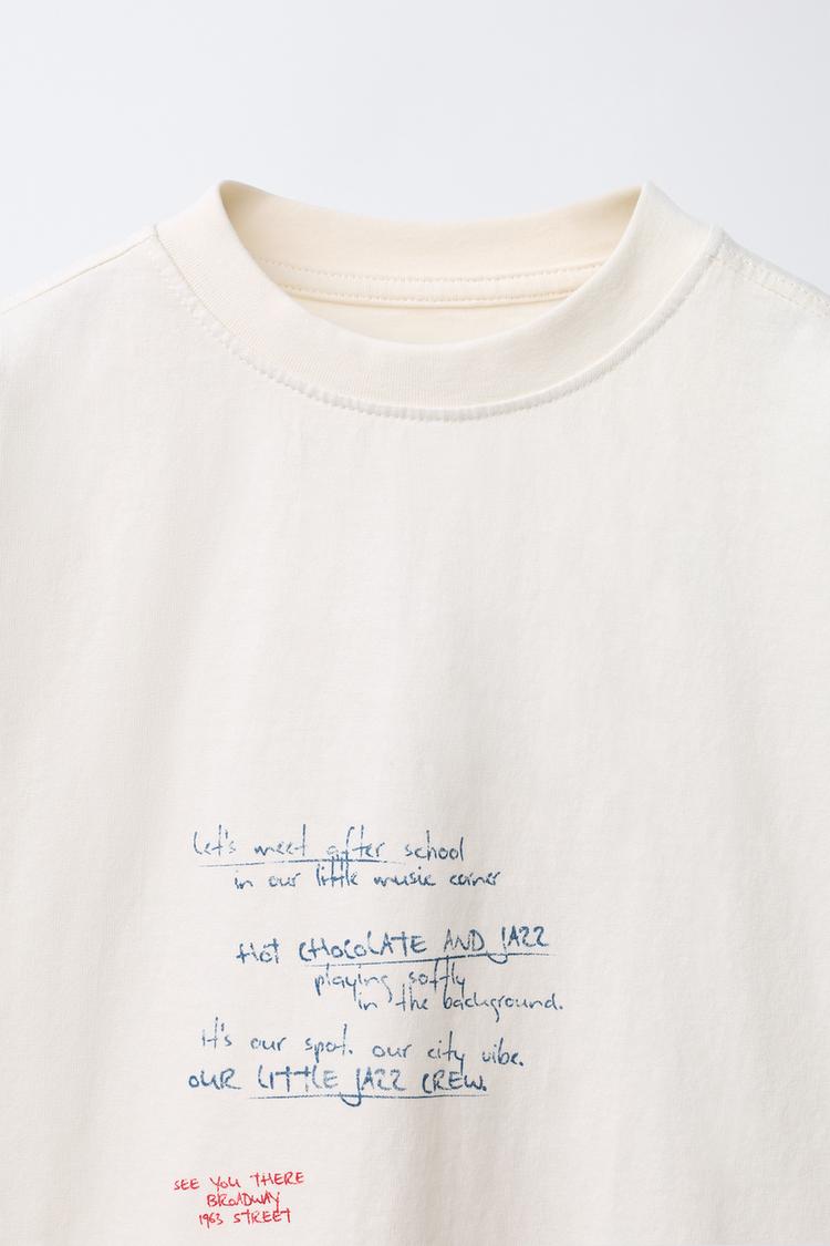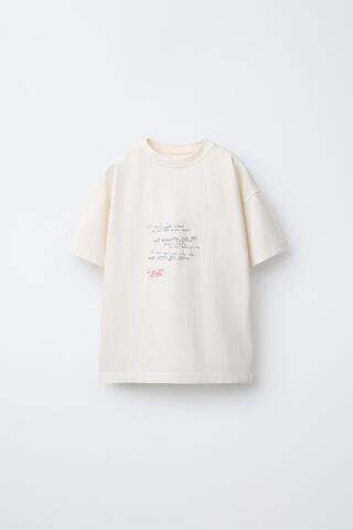 ZARA ФУТБОЛКА С НАДПИСЬЮ, КРЕМОВЫЙ