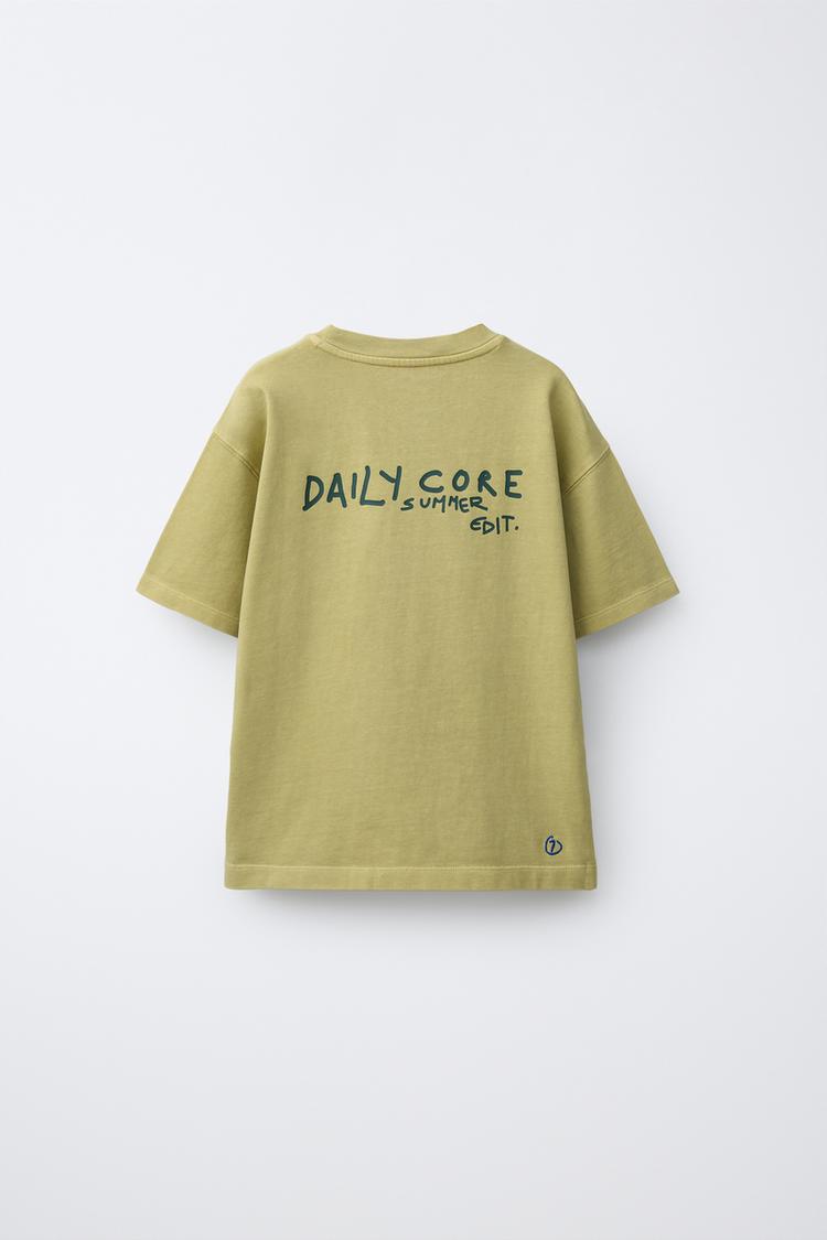 ZARA ФУТБОЛКА С НАДПИСЬЮ, ЛИНЯЛЫЙ ЗЕЛЕНЫЙ