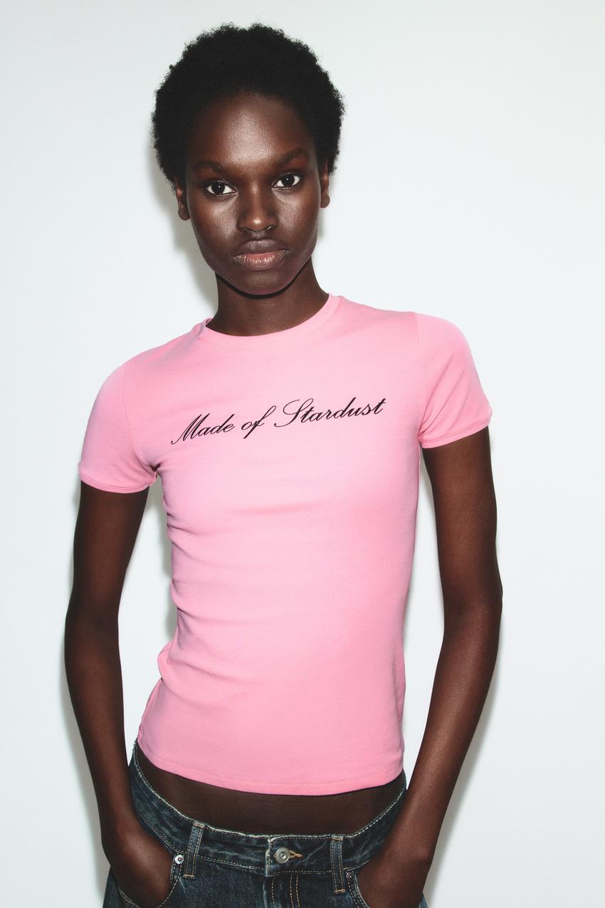 ZARA ФУТБОЛКА С НАДПИСЬЮ, РОЗОВЫЙ