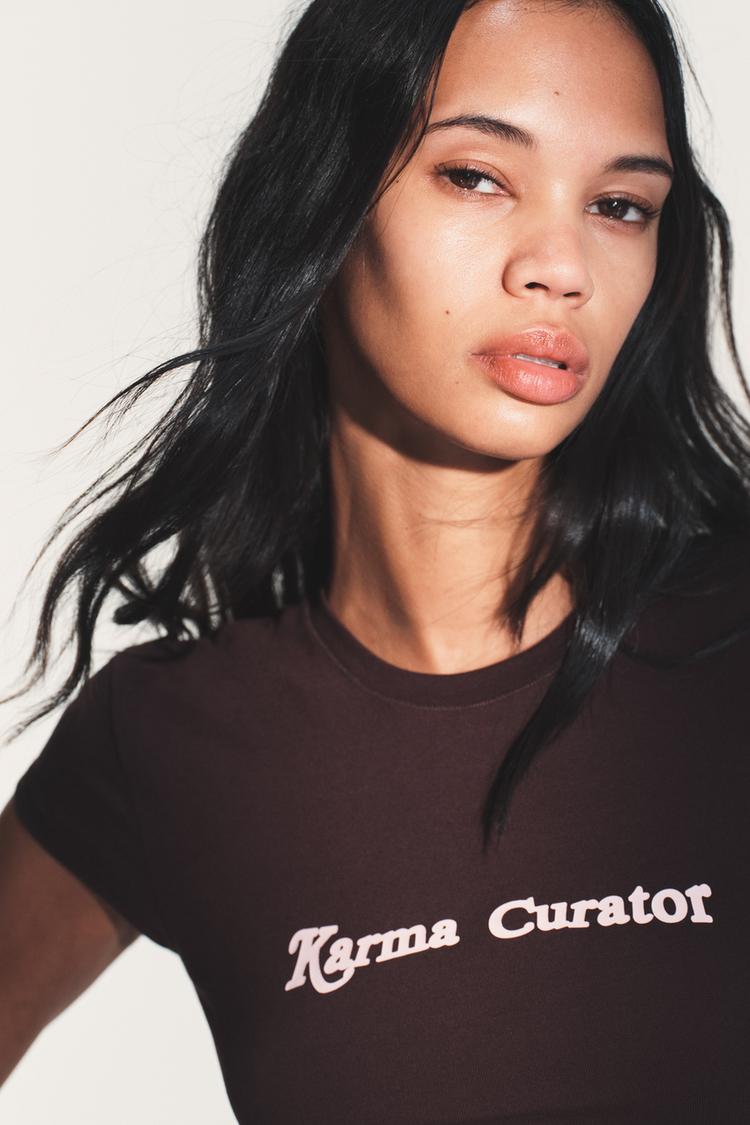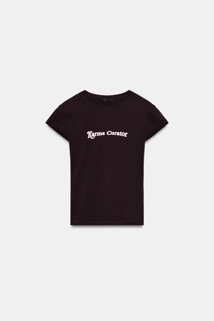 ZARA ФУТБОЛКА С НАДПИСЬЮ, ШОКОЛАДНЫЙ