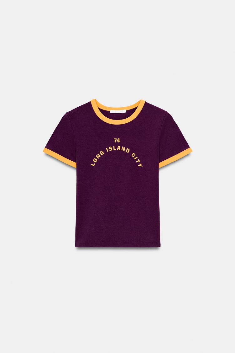 ZARA ФУТБОЛКА С НАДПИСЬЮ, ВИННЫЙ
