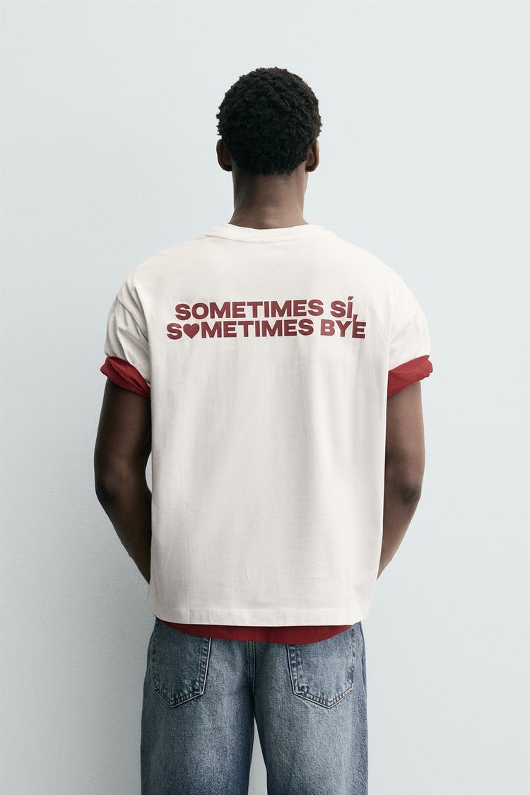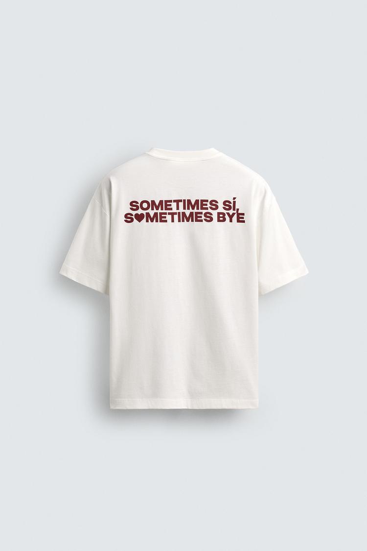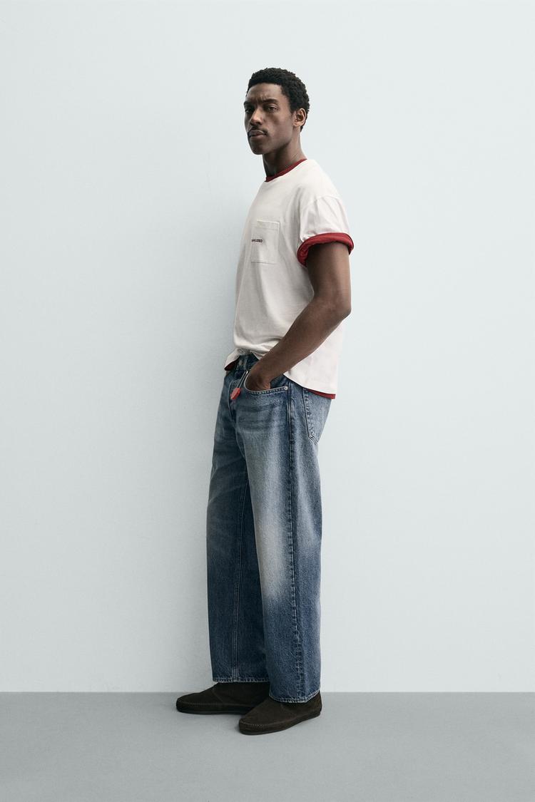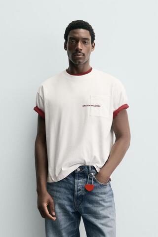 ZARA ФУТБОЛКА С НАГРУДНЫМ КАРМАНОМ И НАДПИСЬЮ, БЕЛЫЙ