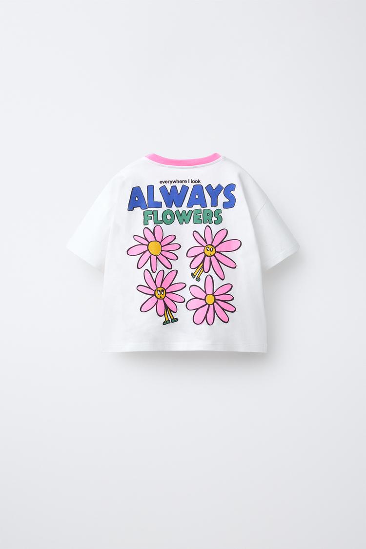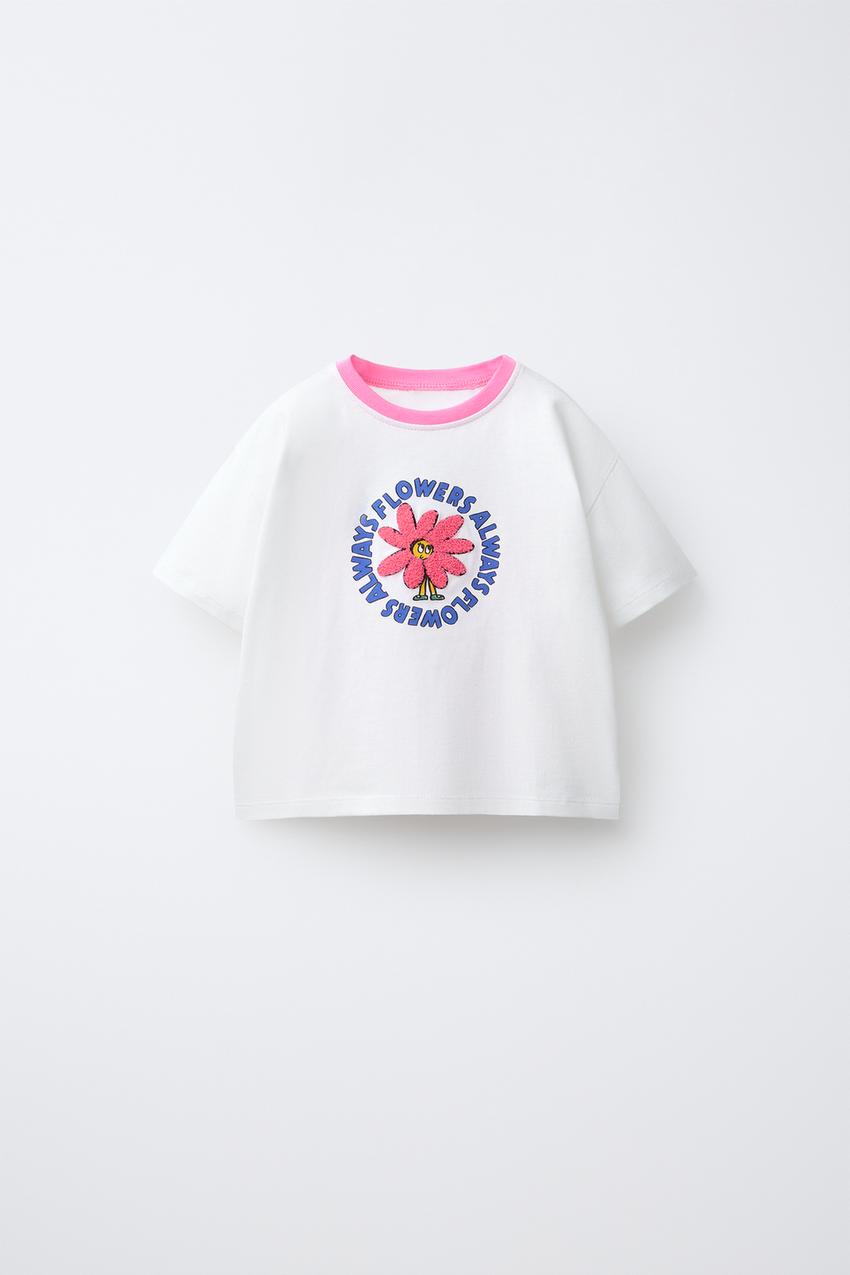 ZARA ФУТБОЛКА С НАШИВКОЙ ИЗ МАХРОВОЙ ТКАНИ, БЕЛЫЙ