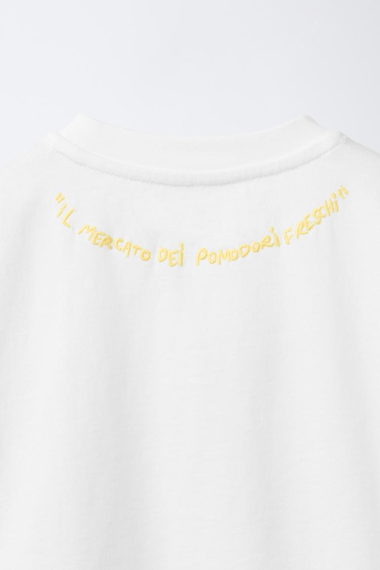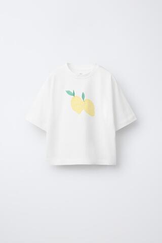 ZARA ФУТБОЛКА С НАШИВКОЙ «ЛИМОНЫ», ЖЕЛТОВАТО-БЕЛЫЙ