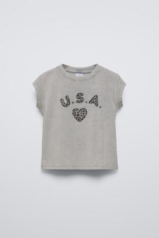 ZARA ФУТБОЛКА С НАШИВКОЙ С АНИМАЛИСТИЧЕСКИМ ПРИНТОМ, АНТРАЦИТОВО-СЕРЫЙ