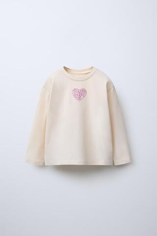 ZARA ФУТБОЛКА С НАШИВКОЙ С АНИМАЛИСТИЧЕСКИМ ПРИНТОМ, ЖЕЛТОВАТО-БЕЛЫЙ