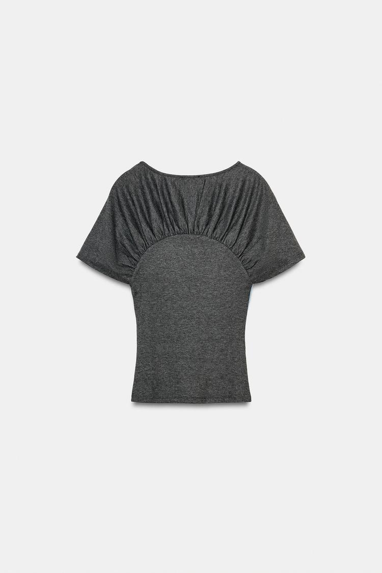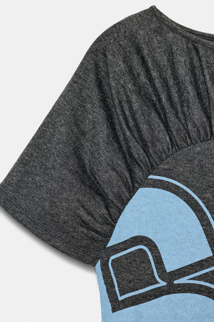 ZARA ФУТБОЛКА С НОМЕРОМ И СБОРКАМИ, СЕРЫЙ