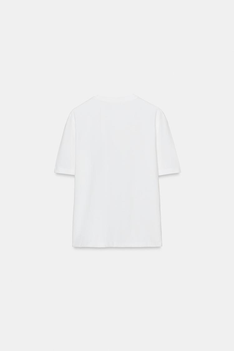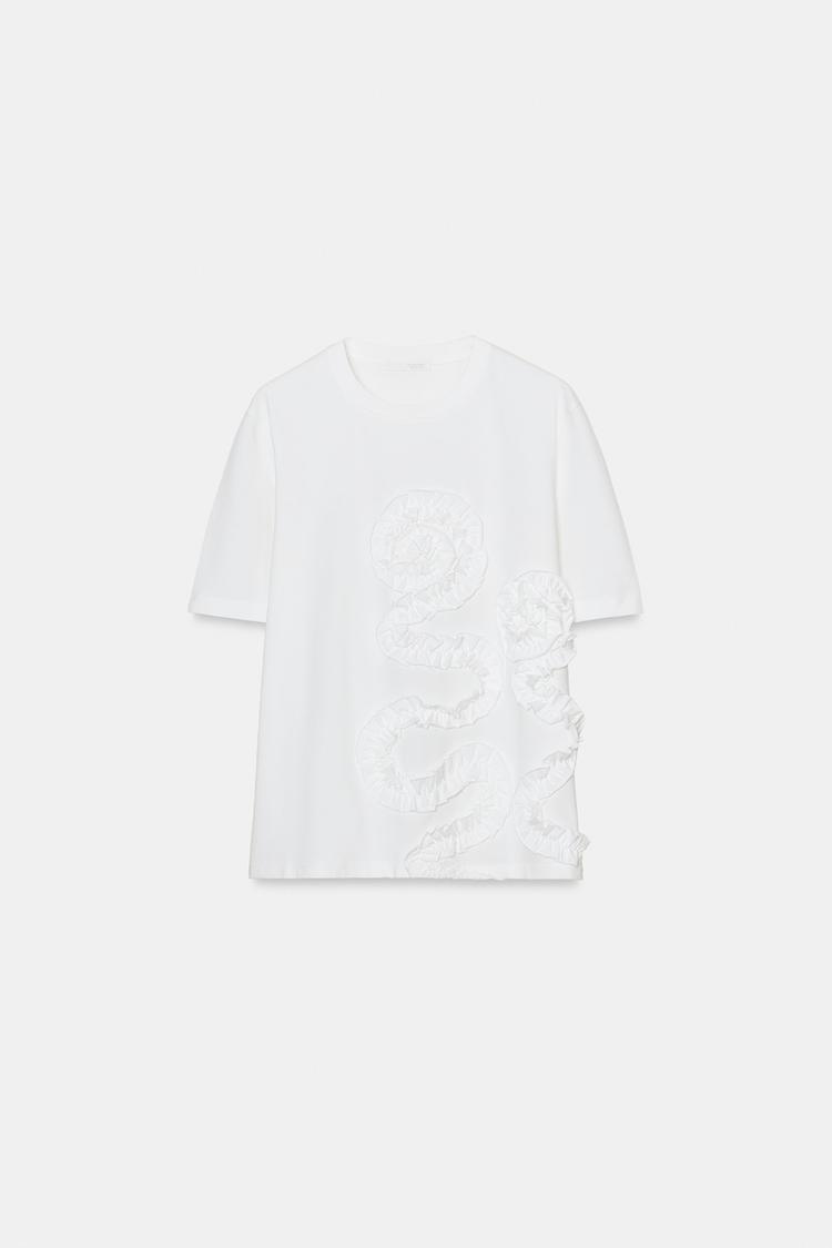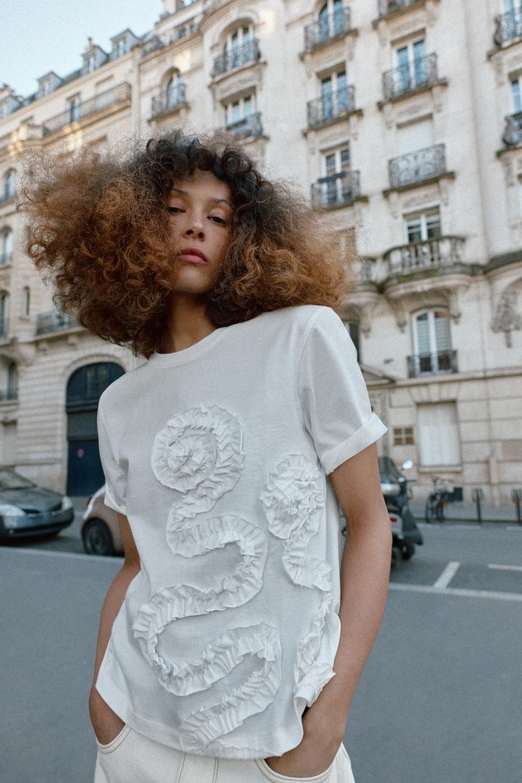 ZARA ФУТБОЛКА С ОБЪЕМНЫМ ЦВЕТОЧНЫМ ДЕКОРОМ, БЕЛЫЙ