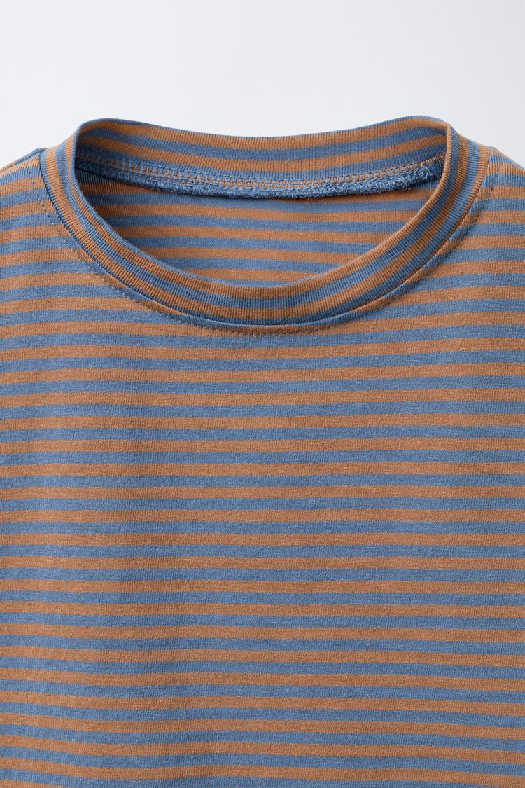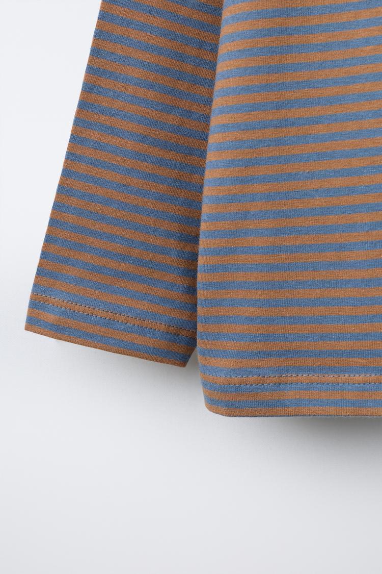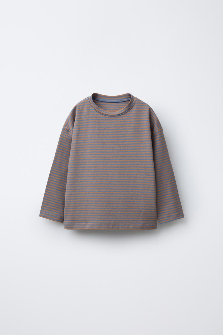 ZARA ЛОНГСЛИВ С ПОЛОСАТЫМ ПРИНТОМ, КОРИЧНЕВО-СИНИЙ