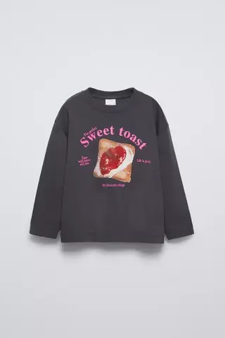 ZARA ФУТБОЛКА С ПРИНТОМ, АНТРАЦИТОВО-СЕРЫЙ