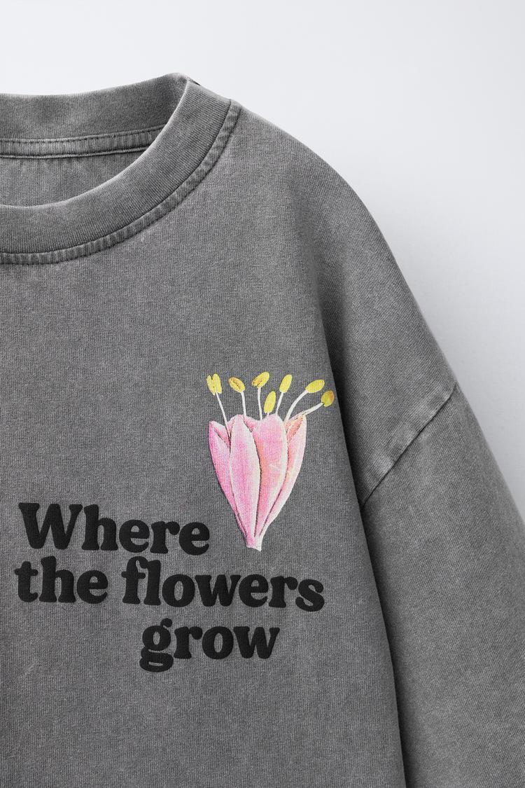 ZARA ФУТБОЛКА С ПРИНТОМ, АНТРАЦИТОВО-СЕРЫЙ