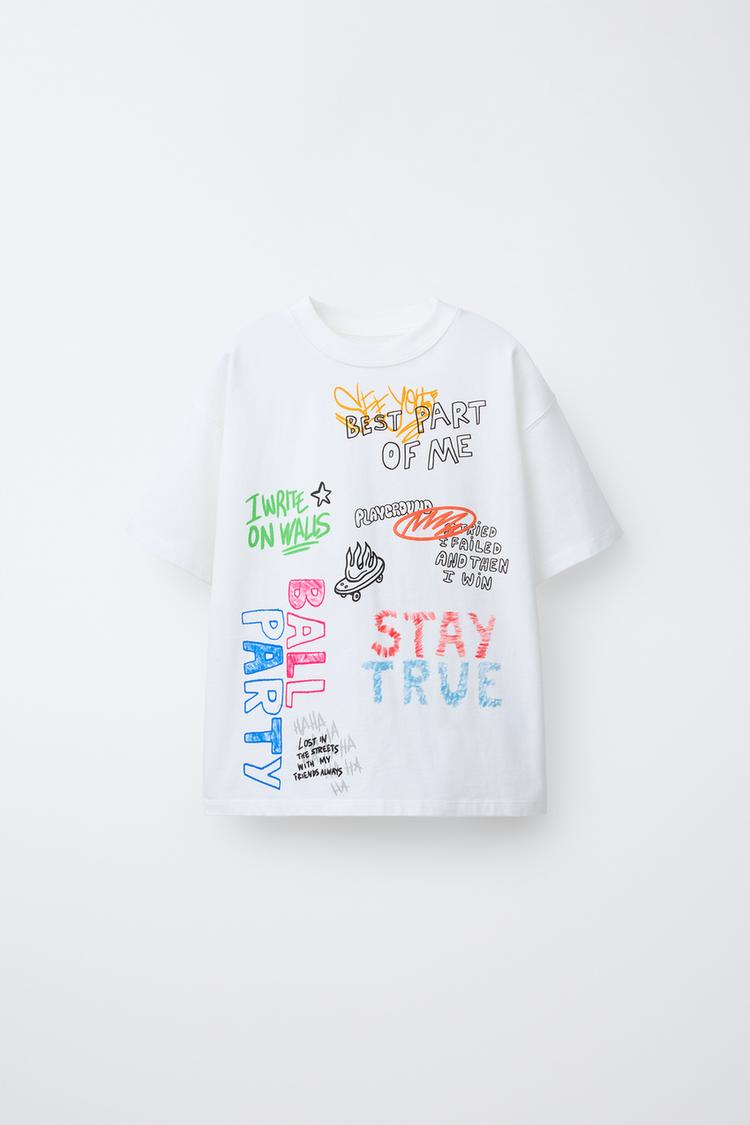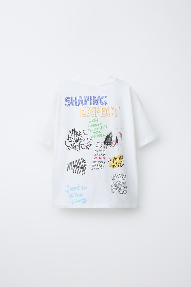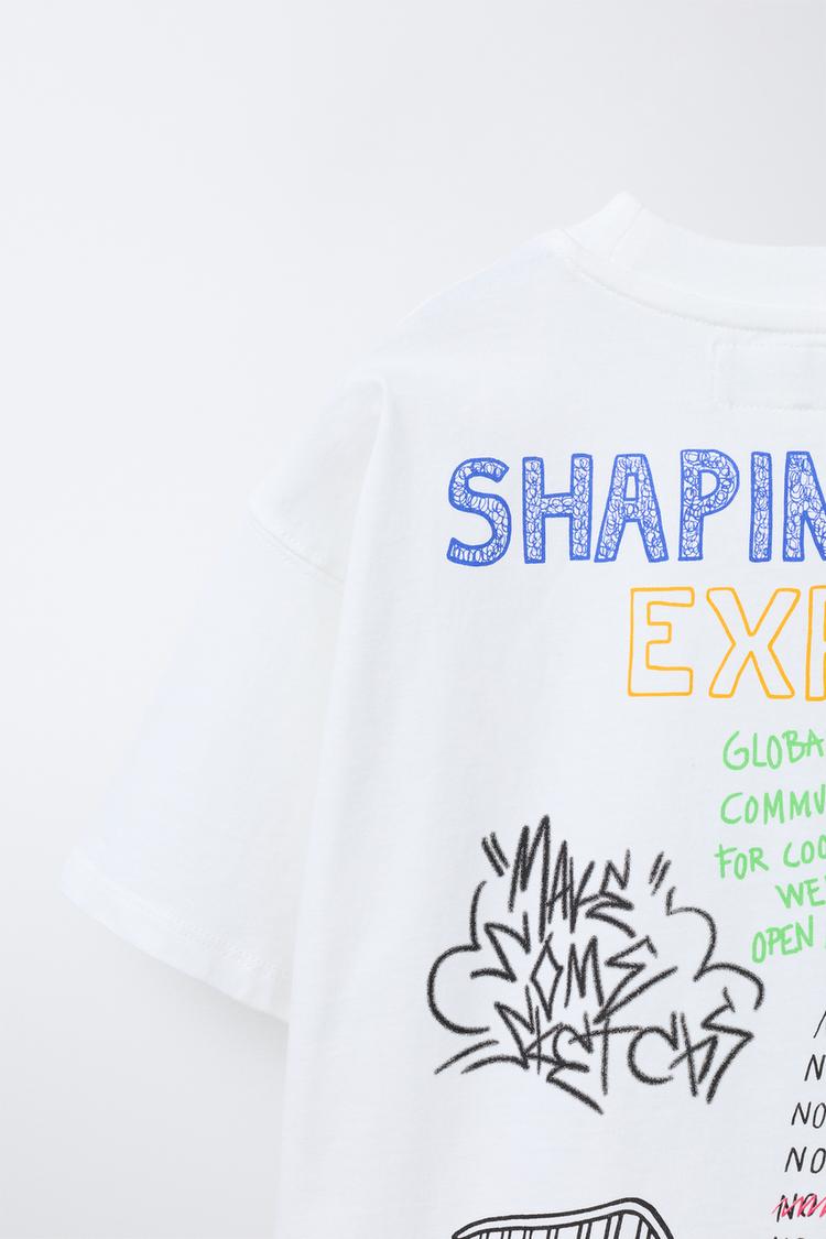 ZARA ФУТБОЛКА С ПРИНТОМ, БЕЛЫЙ