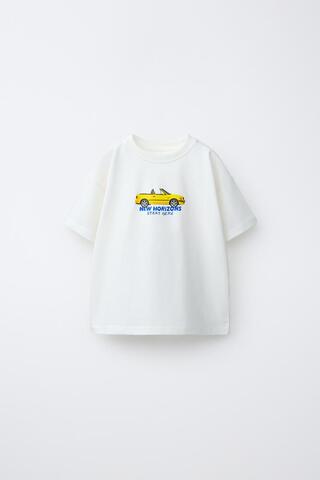 Футболка с круглым вырезом и короткими рукавами. Принт «Автомобиль» спереди.