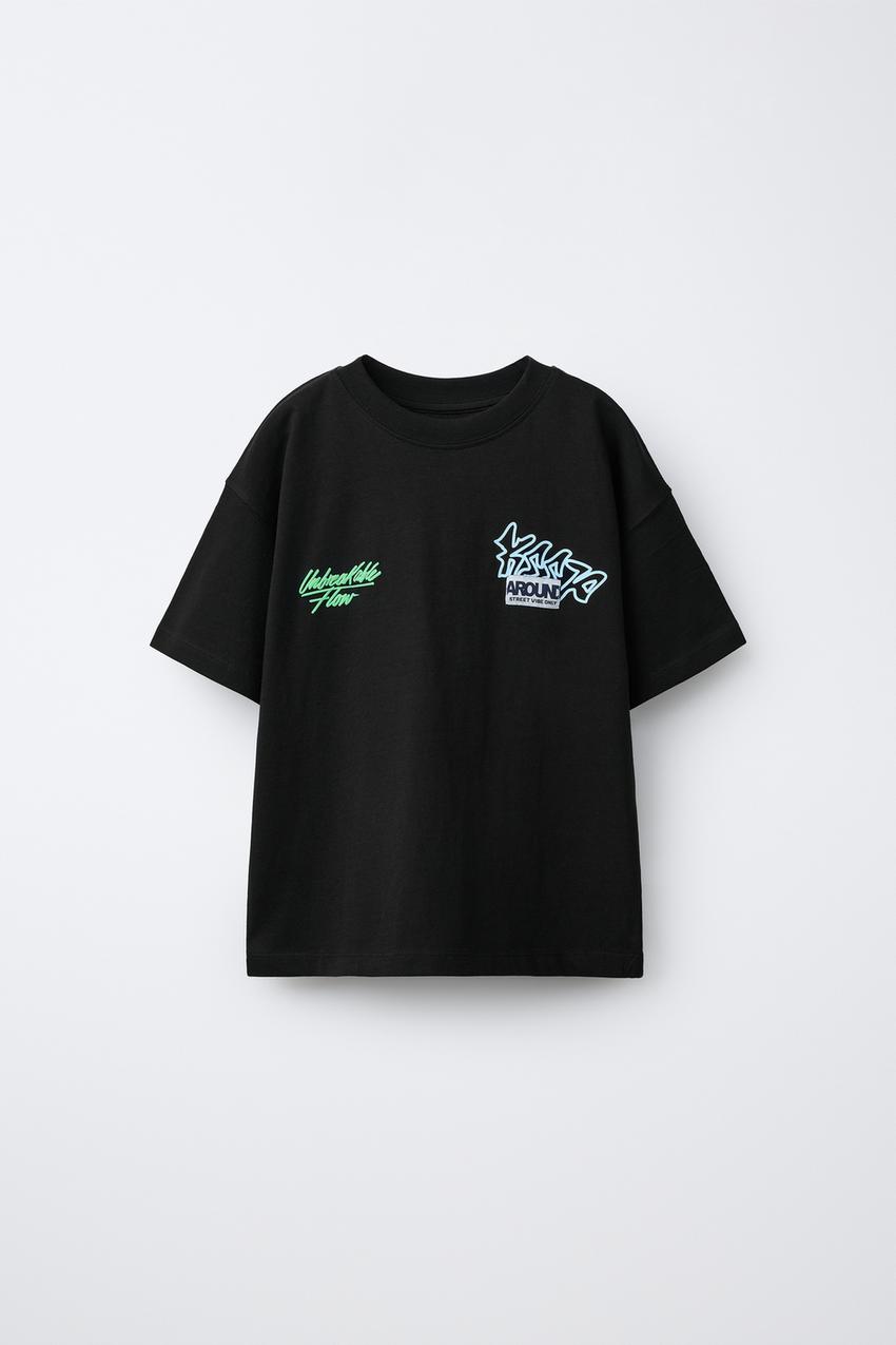 ZARA ФУТБОЛКА С ПРИНТОМ, ЧЕРНЫЙ