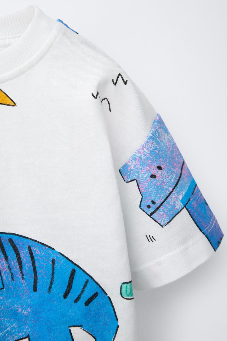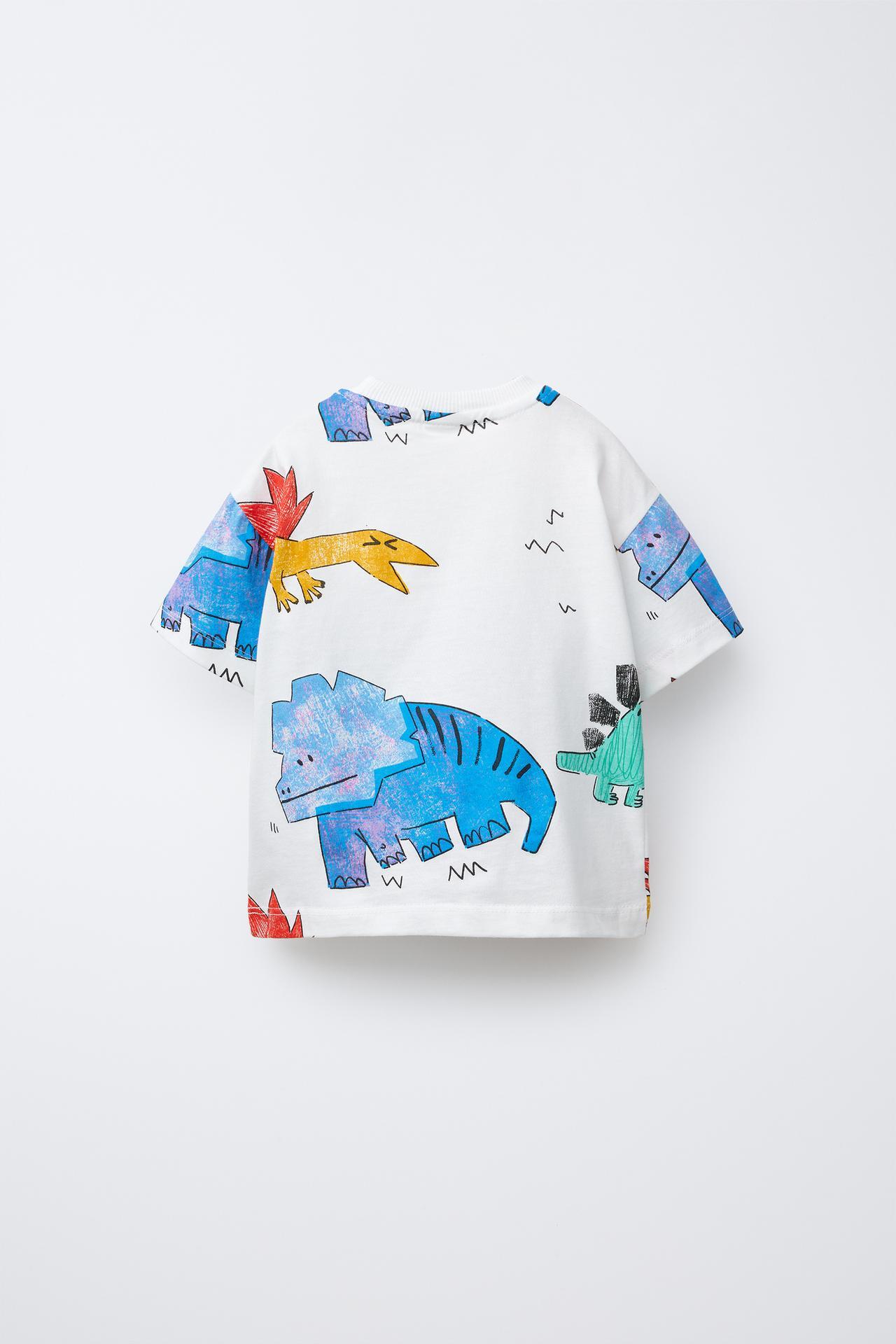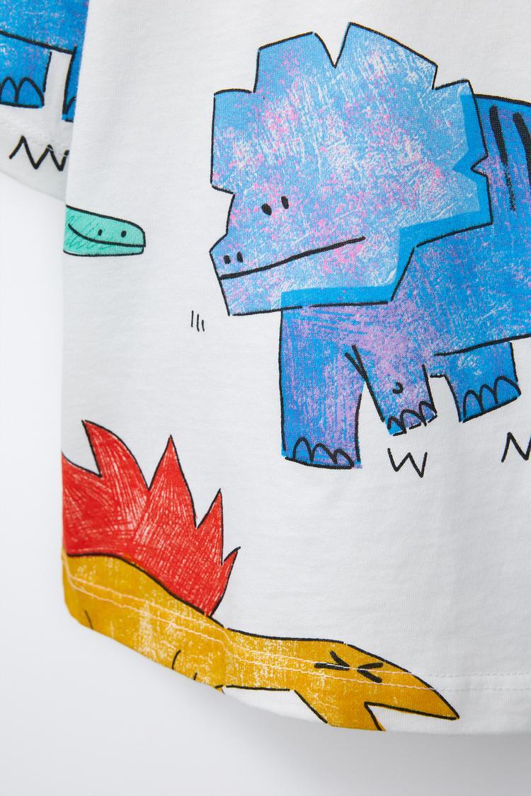 ZARA ФУТБОЛКА С ПРИНТОМ «ДИНОЗАВРЫ», ЖЕЛТОВАТО-БЕЛЫЙ