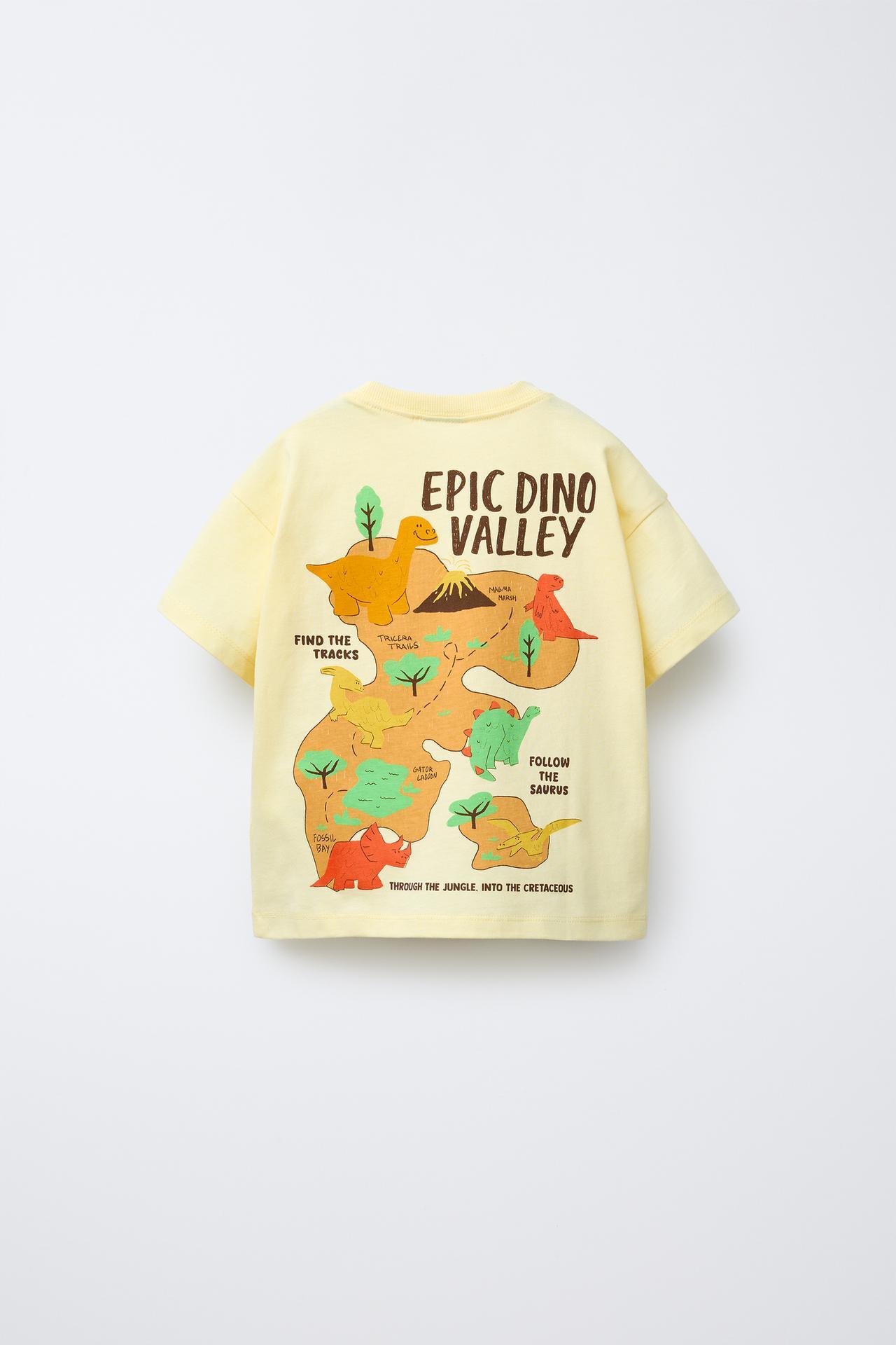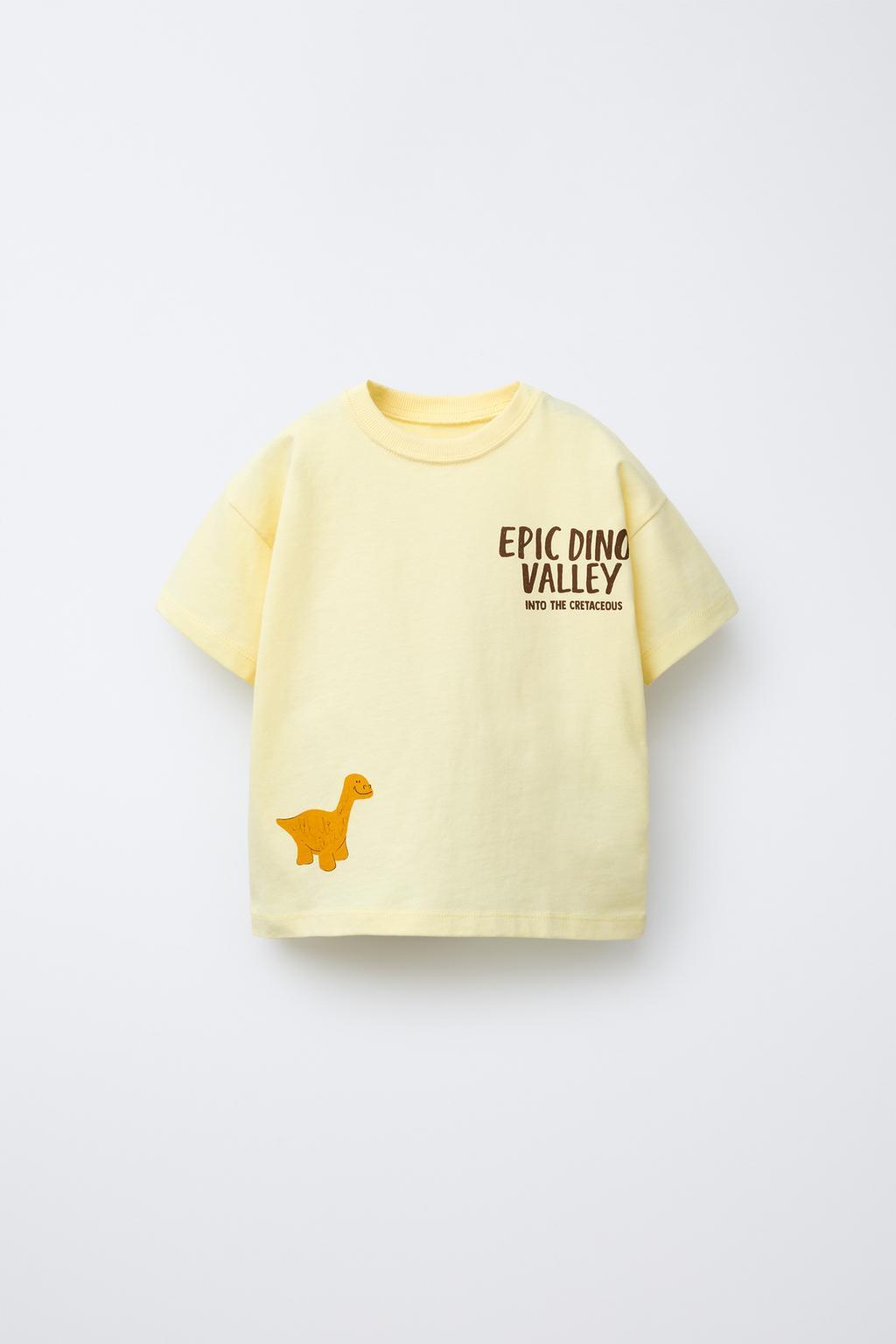 ZARA ФУТБОЛКА С ПРИНТОМ «ДИНОЗАВРЫ», ЖЕЛТЫЙ