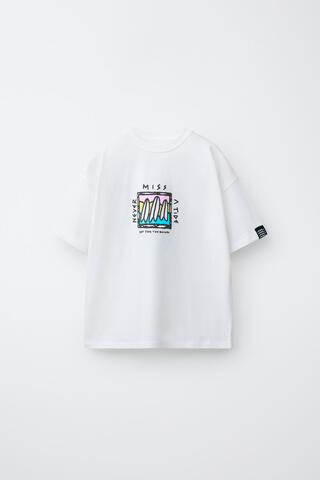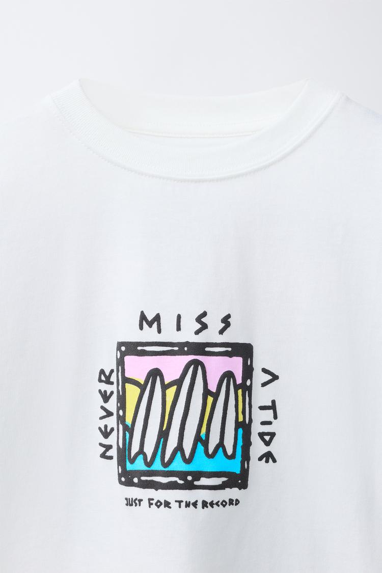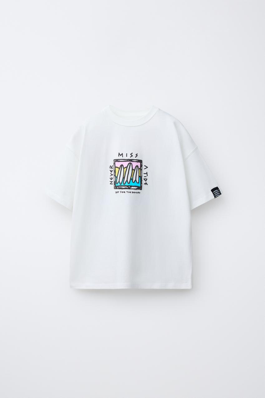 ZARA ФУТБОЛКА С ПРИНТОМ «ДОСКИ ДЛЯ СЕРФИНГА», БЕЛЫЙ