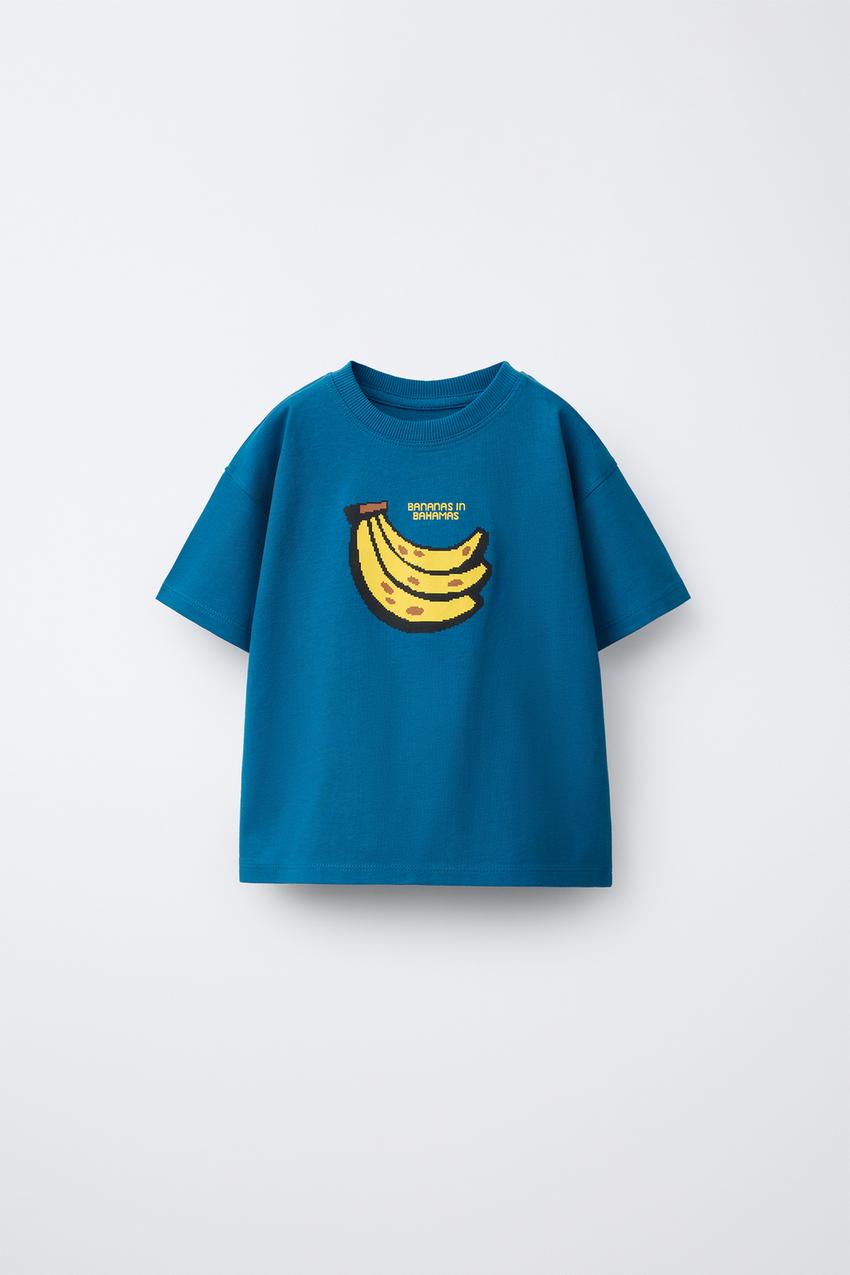 ZARA ФУТБОЛКА С ПРИНТОМ ФРУКТОВ, ЯРКО-СИНИЙ