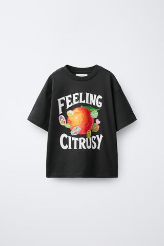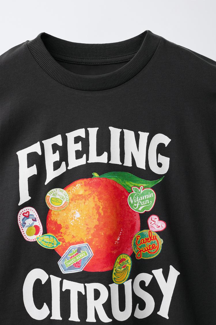 ZARA ФУТБОЛКА С ПРИНТОМ «ФРУКТЫ», АНТРАЦИТОВО-СЕРЫЙ