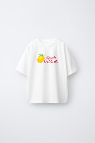 ZARA ФУТБОЛКА С ПРИНТОМ «ФРУКТЫ», БЕЛЫЙ
