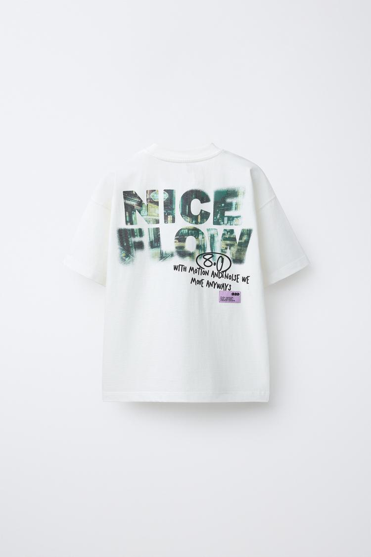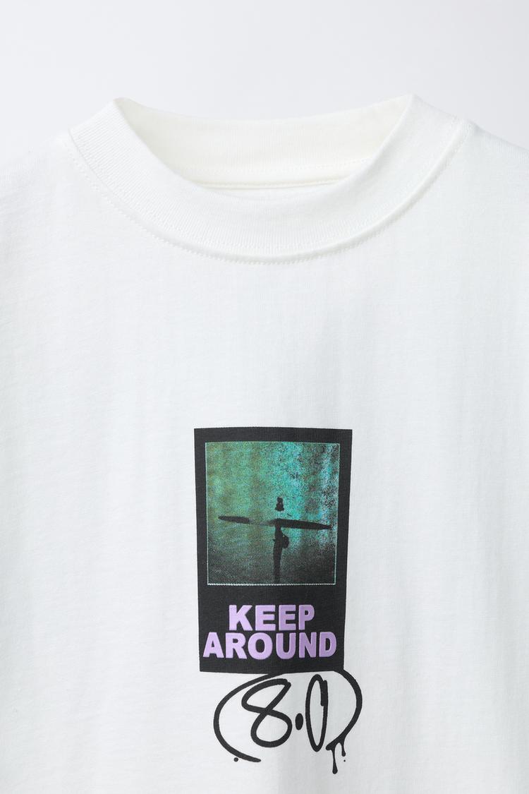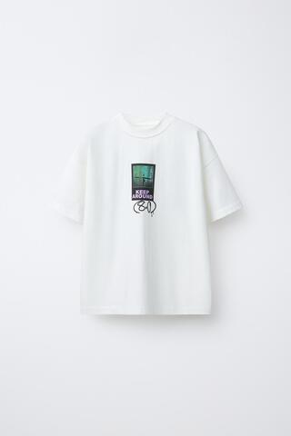 ZARA ФУТБОЛКА С ПРИНТОМ ГРАФФИТИ, БЕЛЫЙ