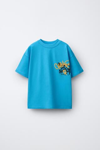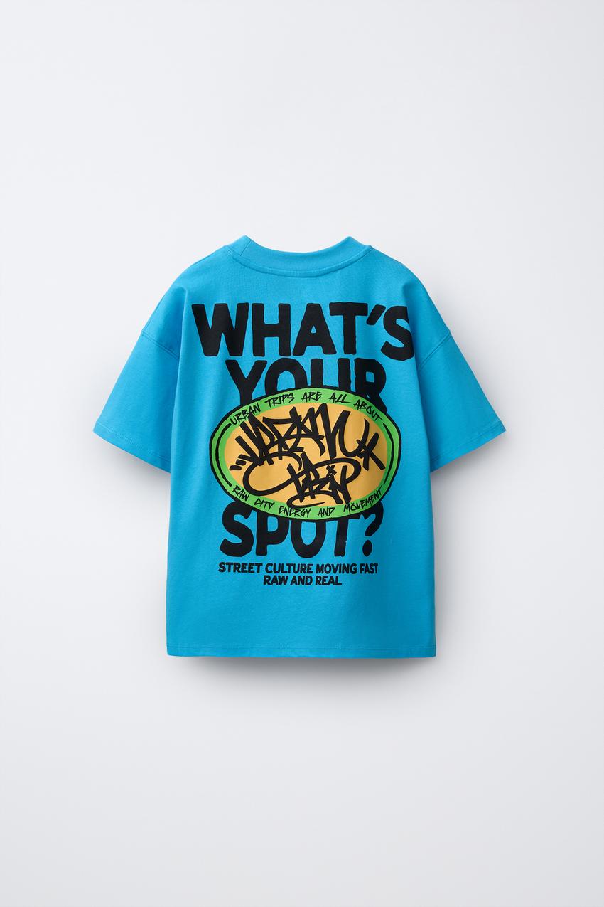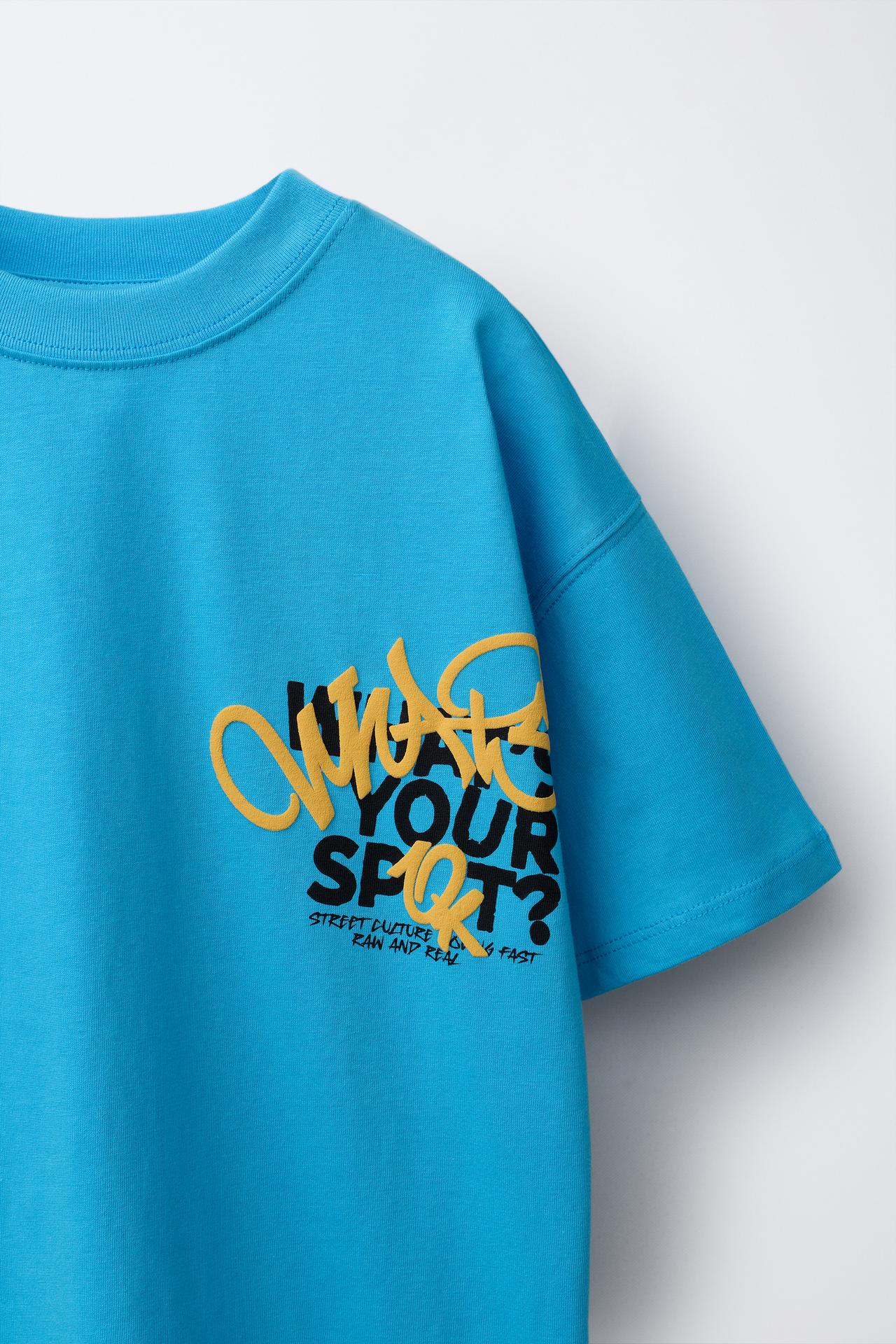 ZARА ФУТБОЛКА С ПРИНТОМ ГРАФФИТИ, СИНИЙ