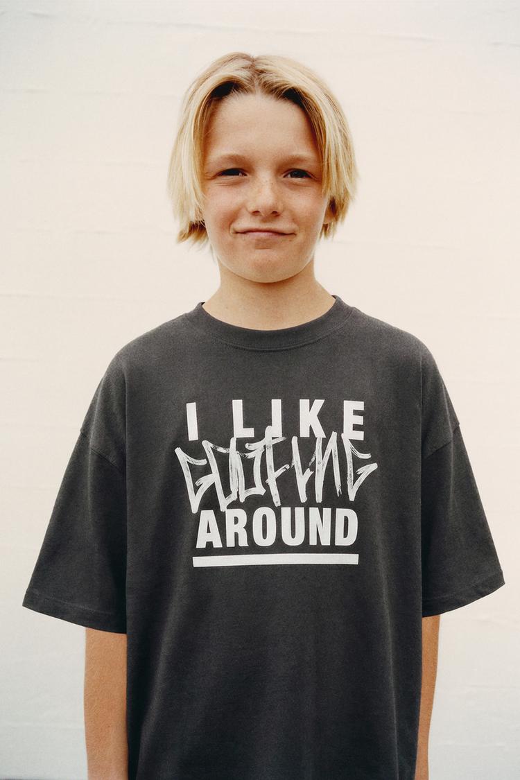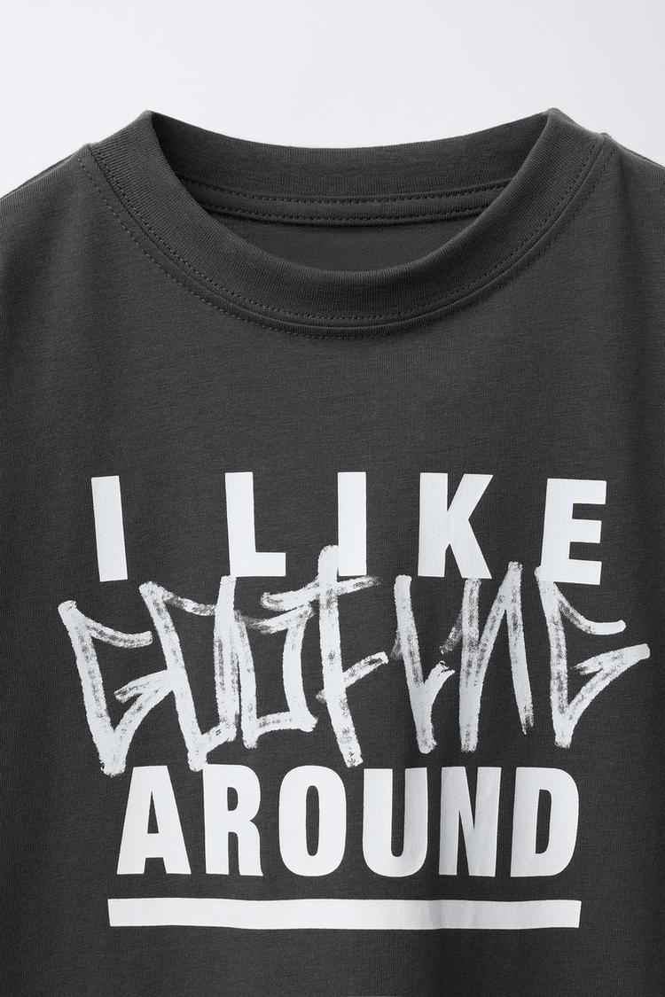 ZARA ФУТБОЛКА С ПРИНТОМ ГРАФФИТИ, ТЕМНЫЙ АНТРАЦИТ