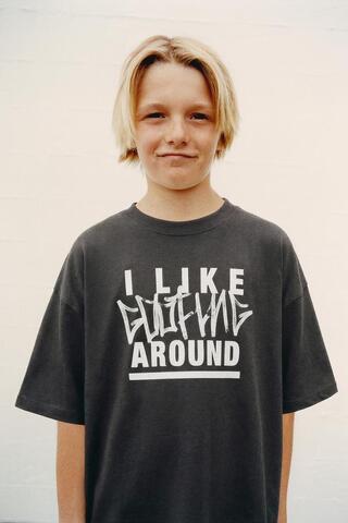 Футболка с круглым вырезом и короткими рукавами. Принт граффити спереди. Основная ткань — хлопок.