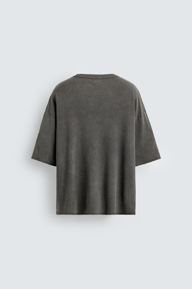 ZARA ФУТБОЛКА С ПРИНТОМ И ЭФФЕКТОМ ПОТЕРТОСТИ, ЛИНЯЛЫЙ ЗЕЛЕНЫЙ