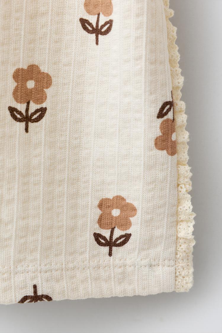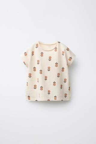 ZARA ФУТБОЛКА С ПРИНТОМ И КРУЖЕВОМ, ЭКРЮ