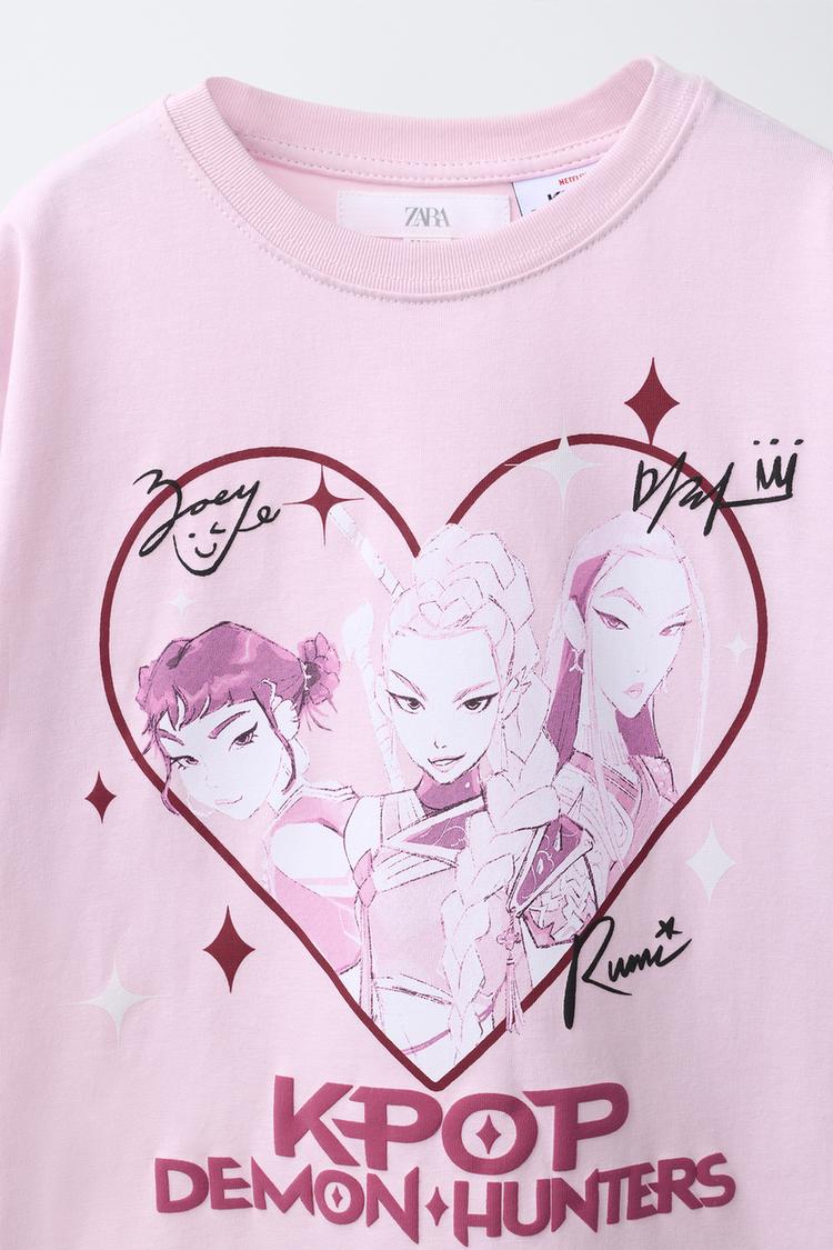 ZARA ФУТБОЛКА С ПРИНТОМ KPOP DEMON HUNTERS™ NETFLIX ©, ПАСТЕЛЬНО-РОЗОВЫЙ