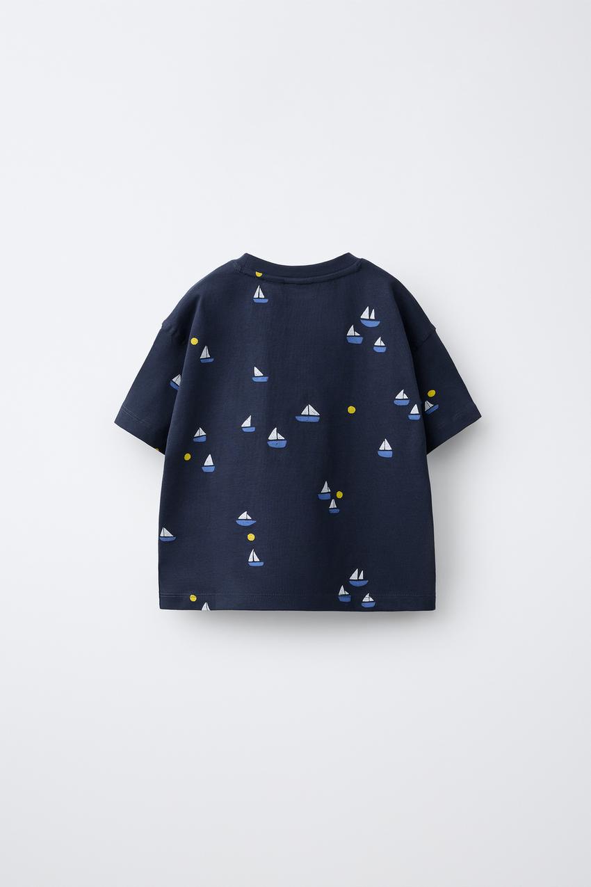 ZARA ФУТБОЛКА С ПРИНТОМ «КРАБЫ», МОРСКОЙ СИНИЙ