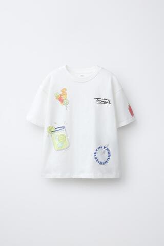 ZARA ФУТБОЛКА С ПРИНТОМ «ЛИМОНАД» БЕЛЫЙ