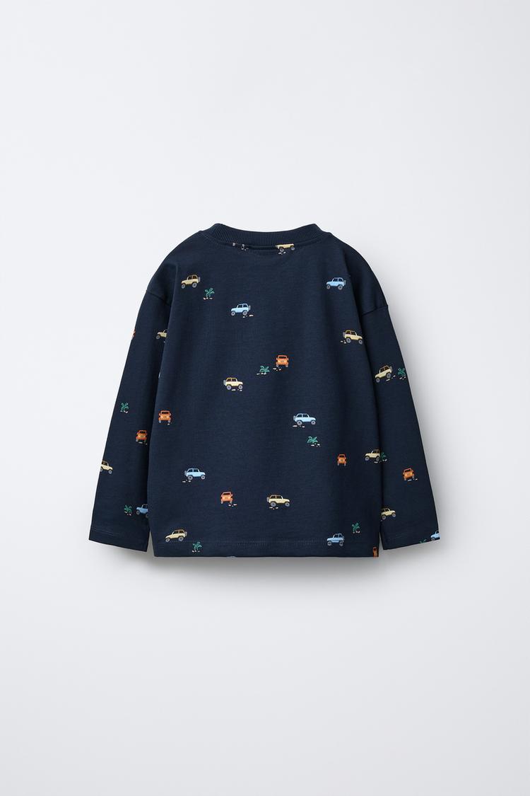 ZARA ФУТБОЛКА С ПРИНТОМ «МАШИНЫ», МОРСКОЙ СИНИЙ