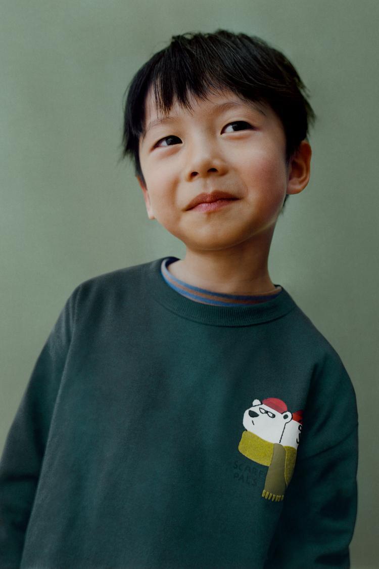 ZARA ФУТБОЛКА С ПРИНТОМ «МЕДВЕДЬ», ГЛУБОКИЙ СИНИЙ