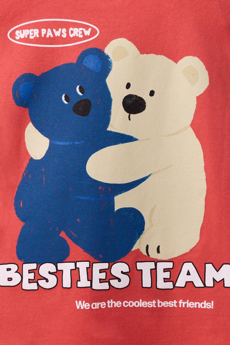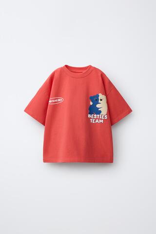 ZARA ФУТБОЛКА С ПРИНТОМ «МЕДВЕДИ», КОРАЛЛОВО-КРАСНЫЙ