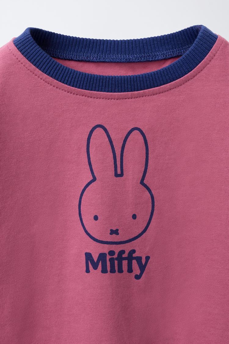 ZARA ФУТБОЛКА С ПРИНТОМ MIFFY™ MERCIS BV © И КОНТРАСТНЫМИ ВСТАВКАМИ, ТЕМНО-РОЗОВЫЙ