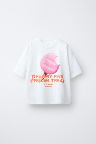 ZARA ФУТБОЛКА С ПРИНТОМ «МОТИ», ЦВЕТ ЛЬДА