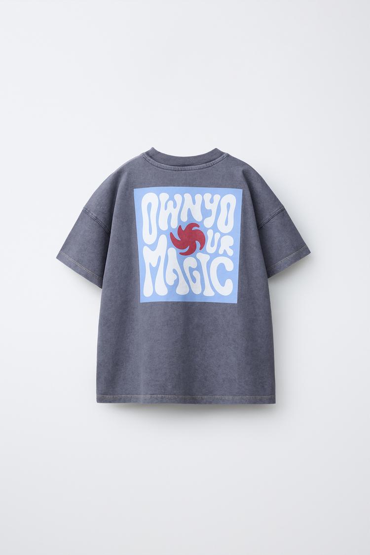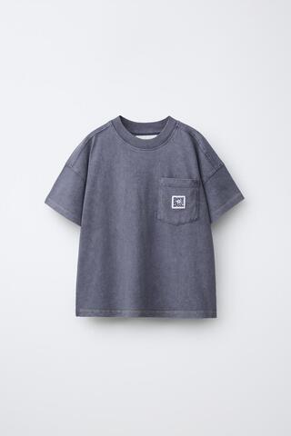 ZARA ФУТБОЛКА С ПРИНТОМ, НАКЛАДНЫМ КАРМАНОМ И ЭФФЕКТОМ ПОТЕРТОСТИ, АНТРАЦИТОВО-СЕРЫЙ