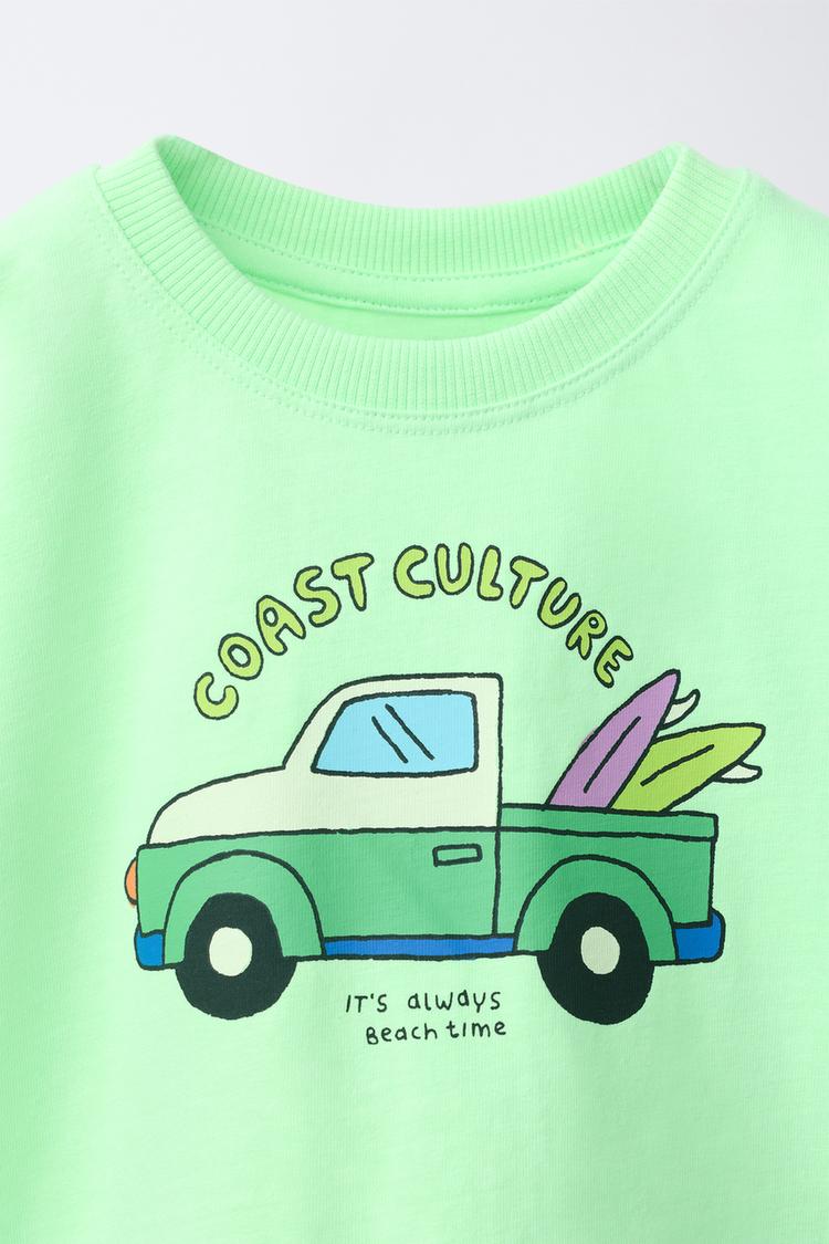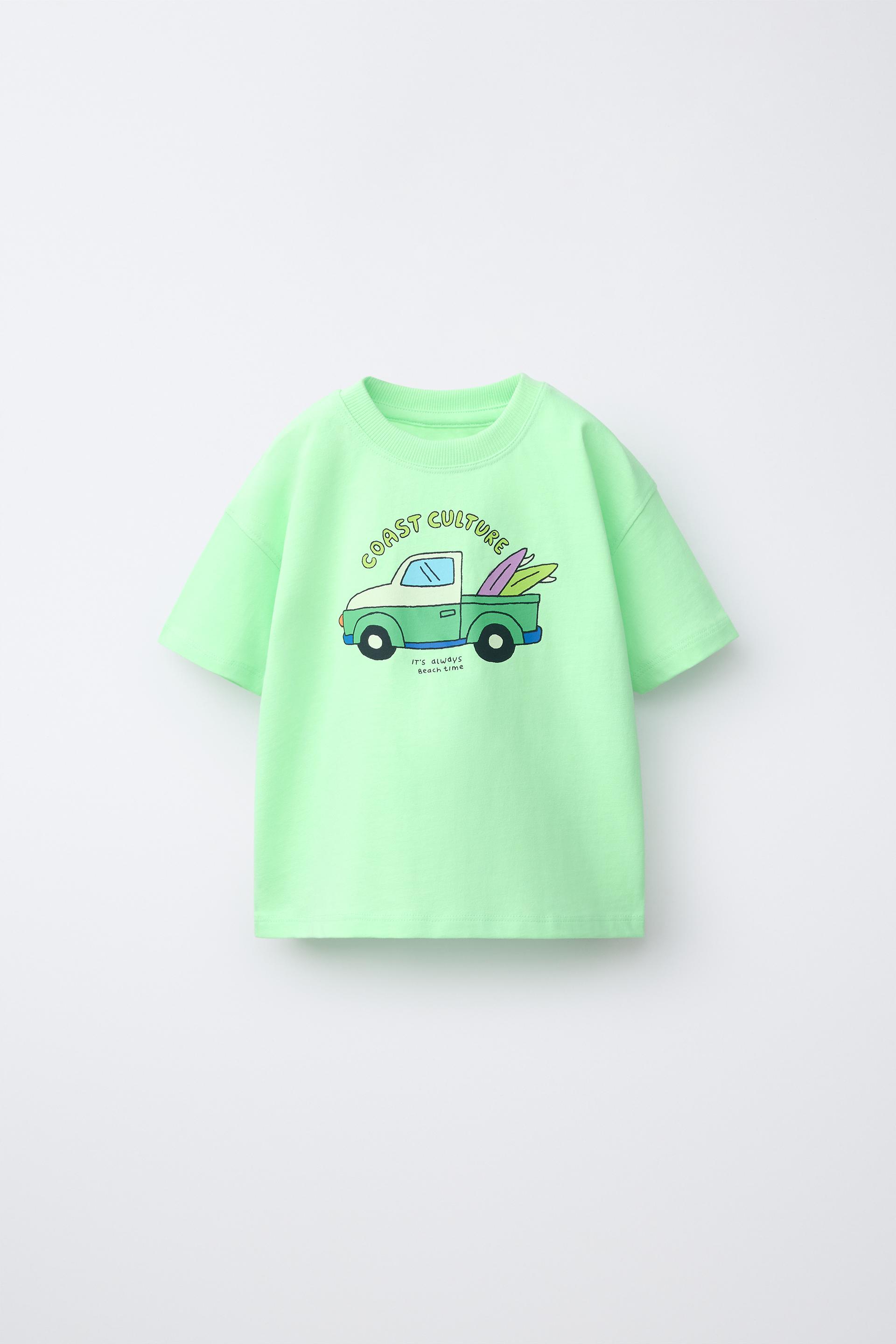 ZARA ФУТБОЛКА С ПРИНТОМ, НЕОНОВЫЙ ЗЕЛЕНЫЙ