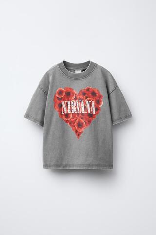 ZARA ФУТБОЛКА С ПРИНТОМ NIRVANA ® И СТРАЗАМИ, СЕРЫЙ