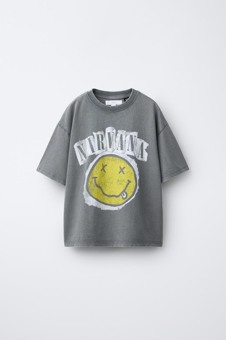 ZARA ФУТБОЛКА С ПРИНТОМ NIRVANA ®, СЕРЫЙ
