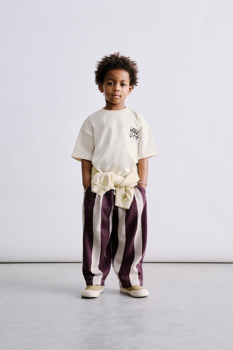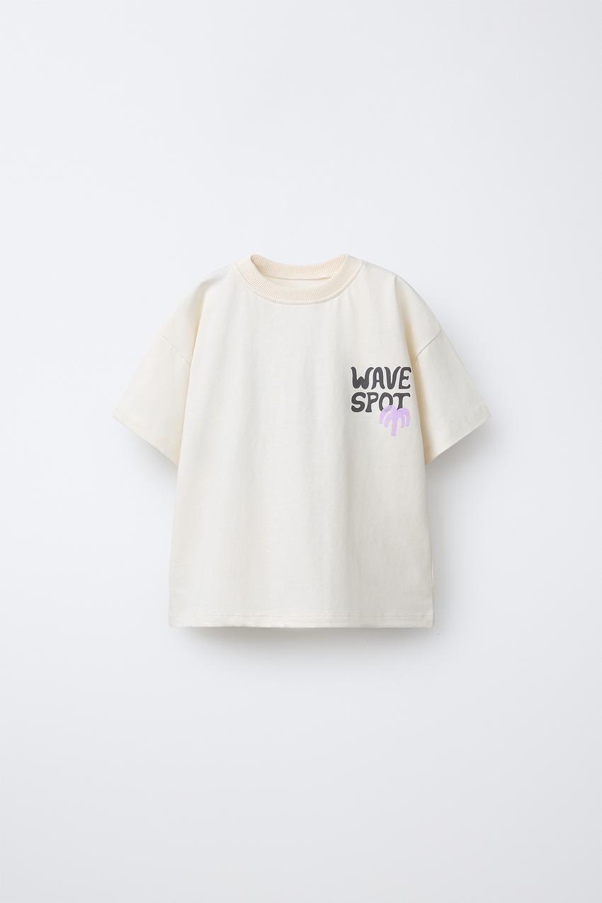 ZARA ФУТБОЛКА С ПРИНТОМ «ПАЛЬМА И СОЛНЦЕ», ЦВЕТ СЛОНОВОЙ КОСТИ