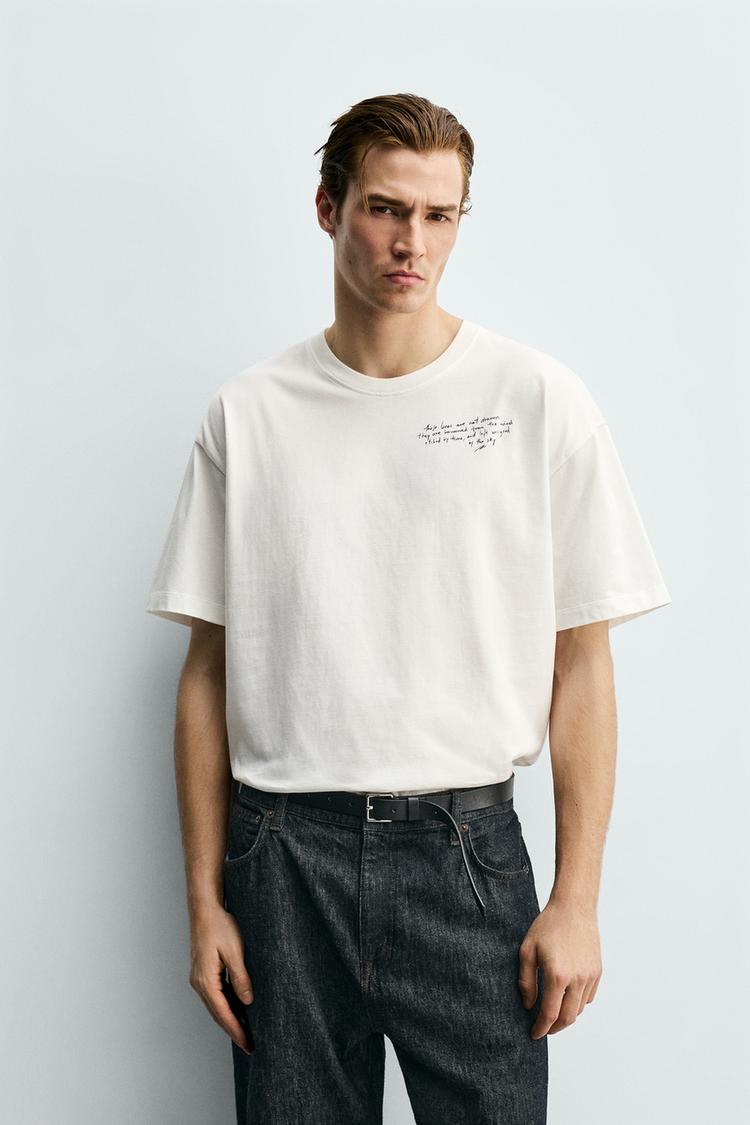 ZARA ФУТБОЛКА С ПРИНТОМ «ПЕЙЗАЖ», БЕЛЫЙ