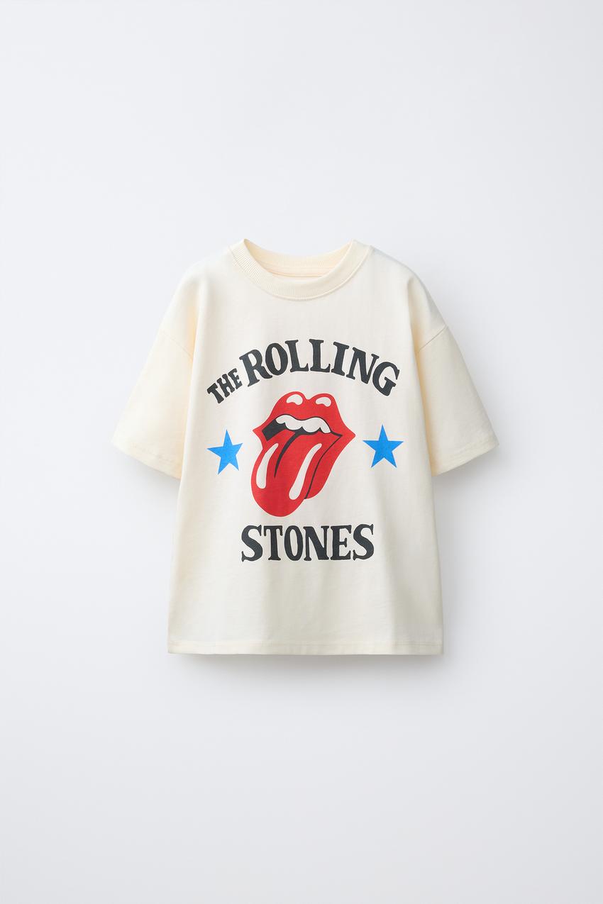 ZARA ФУТБОЛКА С ПРИНТОМ ROLLING STONES ©, ЭКРЮ